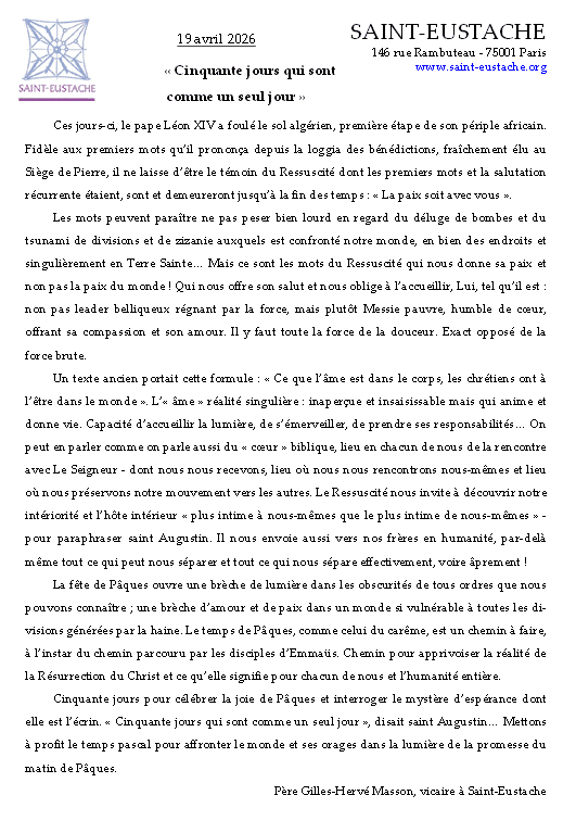 Éditorial de Saint-Eustache